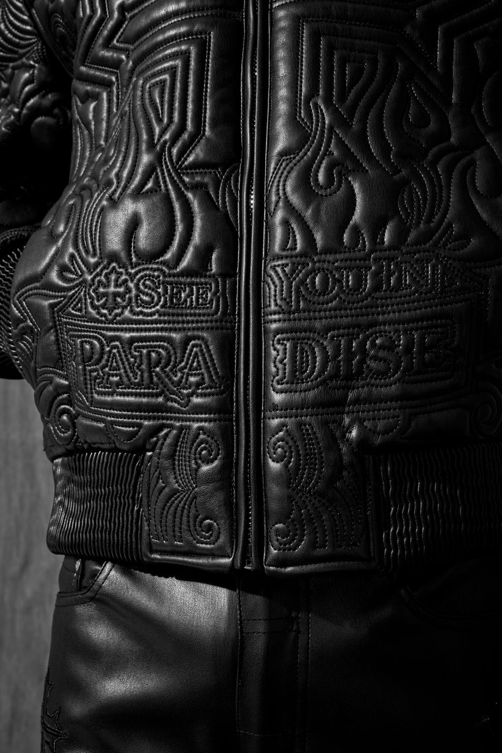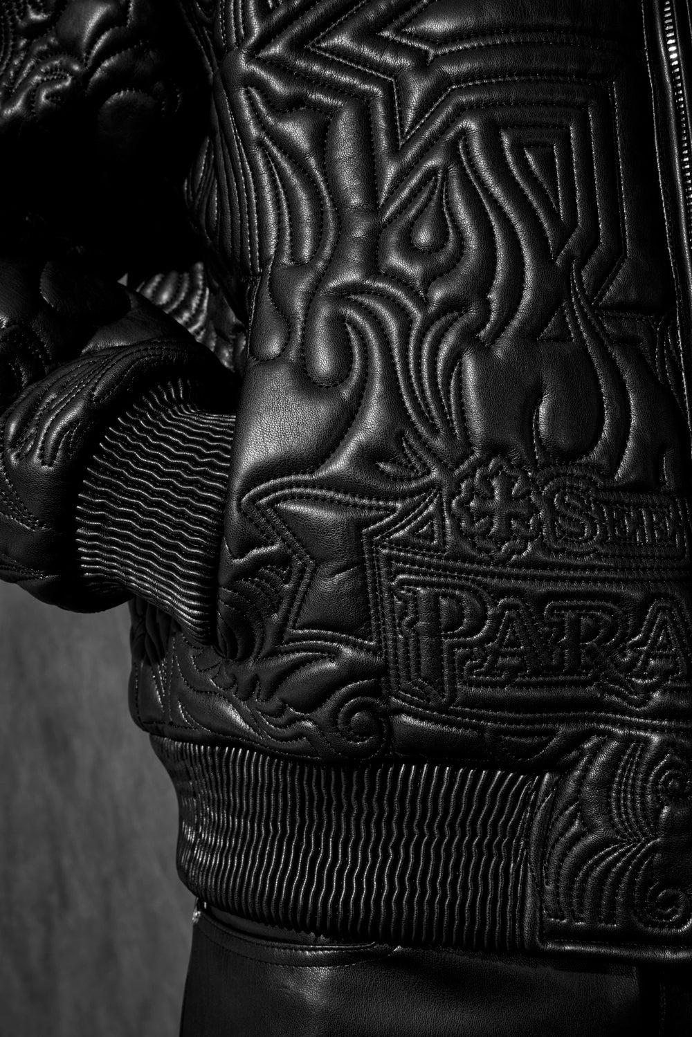 Quilted embroidery throughout